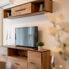 Apartamentul este compus din 2 camere, oferind astfel un spatiu generos pentru relaxare si odihna.Designul interior cu culori calde creeaza o atmosfera primitoare si placuta, contribuind la sentimentul de acasa.