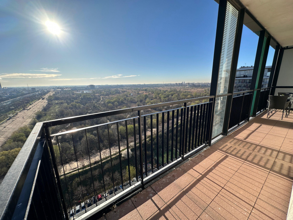 Închiriez apartament spațios și elegant, situat în complexul rezidențial Asmita Gardens, la etajul 16 din 17, beneficiind de o priveliște panoramică spectaculoasă asupra Deltei Văcărești și a orașului București. Apartamentul are o suprafață totală de 82 mp, este complet decomandat, recent renovat și se închiriază complet mobilat și utilat cu mobilier modern și electrocasnice de ultimă generație.