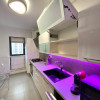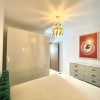 - dulap generos iluminat inteligent cu senzori si arhitectura incapatoare cu rafturi transparente, comoda incapatoare cu blat de marmura naturala si design modern, noptiera spatioasa cu blat de marmura naturala, glafuri de marmura naturala