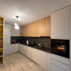 Bucătăria este echipată cu electrocasnice moderne și încorporate, inclusiv masina de spălat vase, creând un spațiu funcțional și stilat.